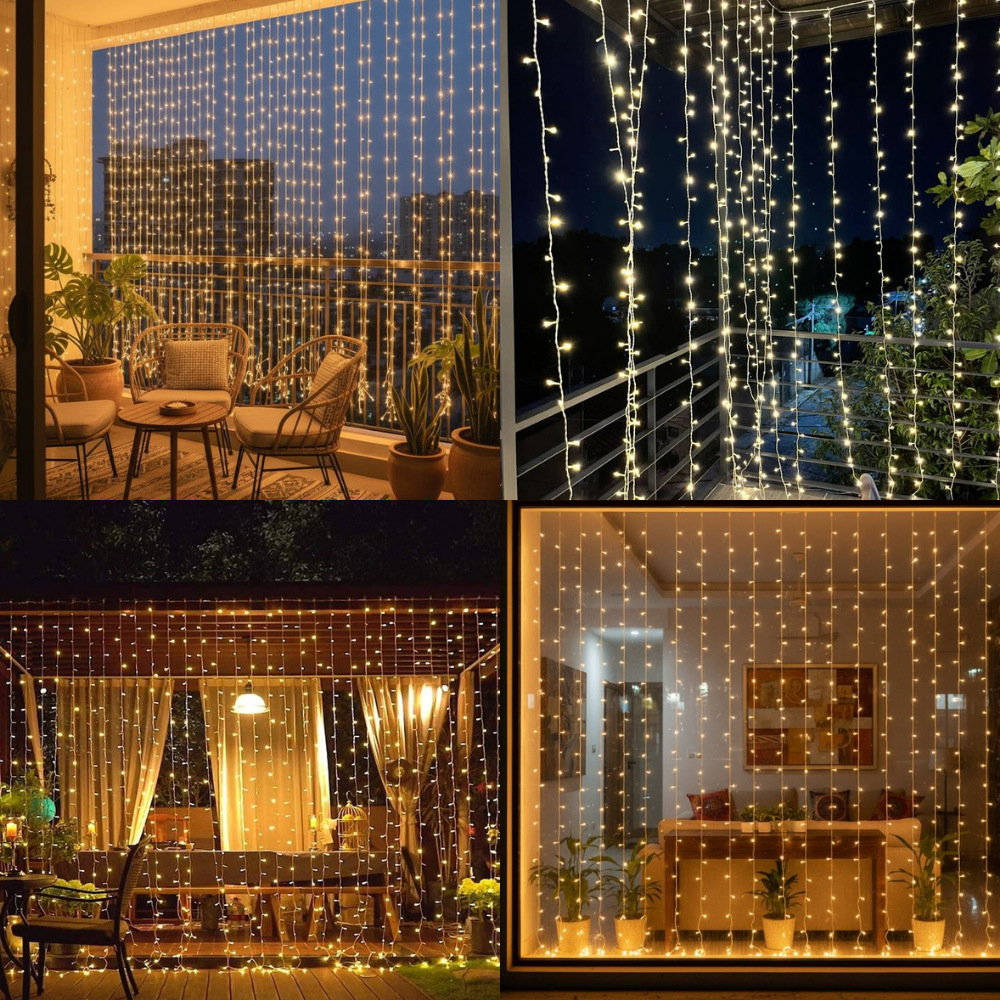 Cortina Led Alambre 3x3mts 10tiras Cálida Solar Control Efectos